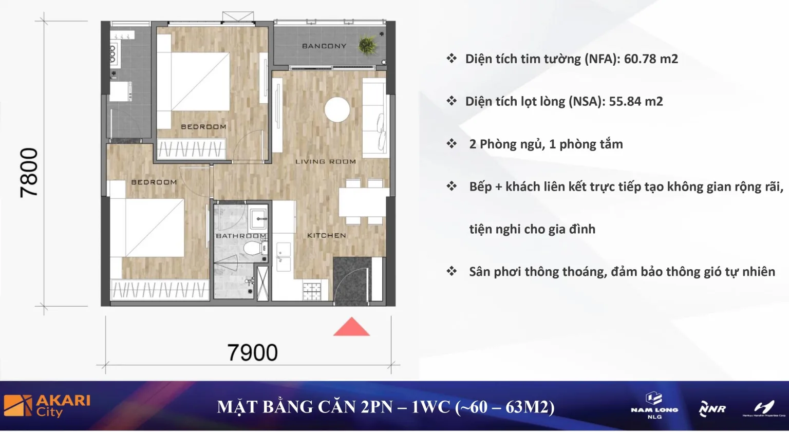 Nhà mẫu Căn hộ 62m2 Akari City giai đoạn 2