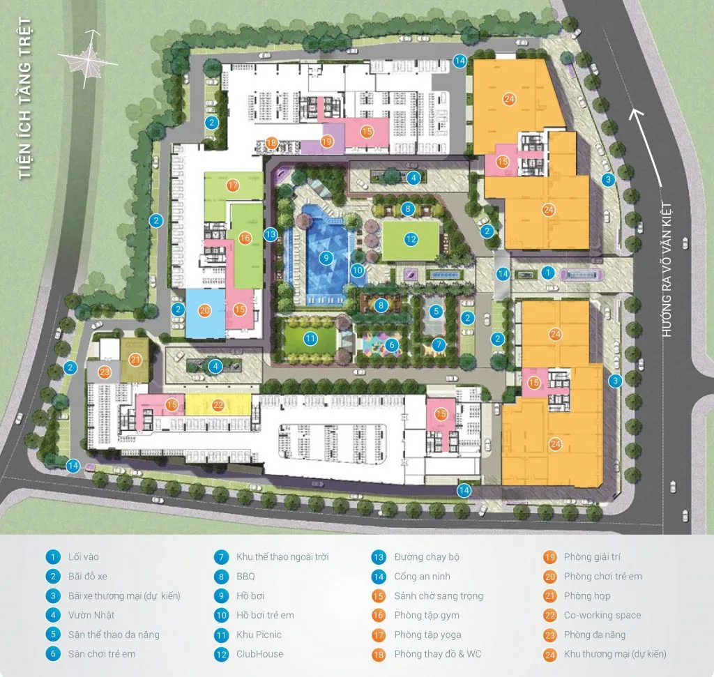 | Hồ bơi riêng từng giai đoạn, trung tâm thương mại dọc đại lộ 42 m, Siêu thị tiện ích, sân thể thao, Clubhouse, Gym, Yoga, vườn Nhật, khu vui chơi trẻ em, thư viện,…. | |