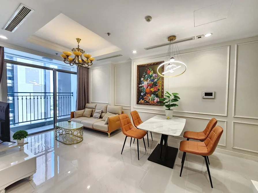 Thuê căn hộ 2 phòng ngủ tòa Landmark 3, căn hộ tầng thấp được trang bị nội thất đầy đủ, nằm ở khu vực tầng cao, tầm view đằng sau trường học liên cấp Vinschool và Landmark 2,3.